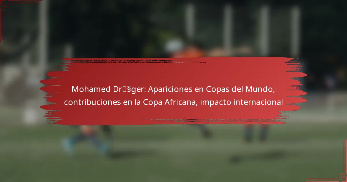 Mohamed Dräger ha tenido un impacto notable en el fútbol internacional, representando a Túnez en la Copa Mundial de la FIFA y en la Copa Africana. Sus actuaciones no solo han destacado su talento individual, sino que también han mejorado la dinámica del equipo, estableciéndolo como un jugador clave en la historia del fútbol tunecino.